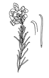 Dwarf to small, multi-branched erect shrub, 30 cm to 1.5 m high. Fine slender leaves with bent tips. Showy yellow and orange flowers (Sep- Nov).